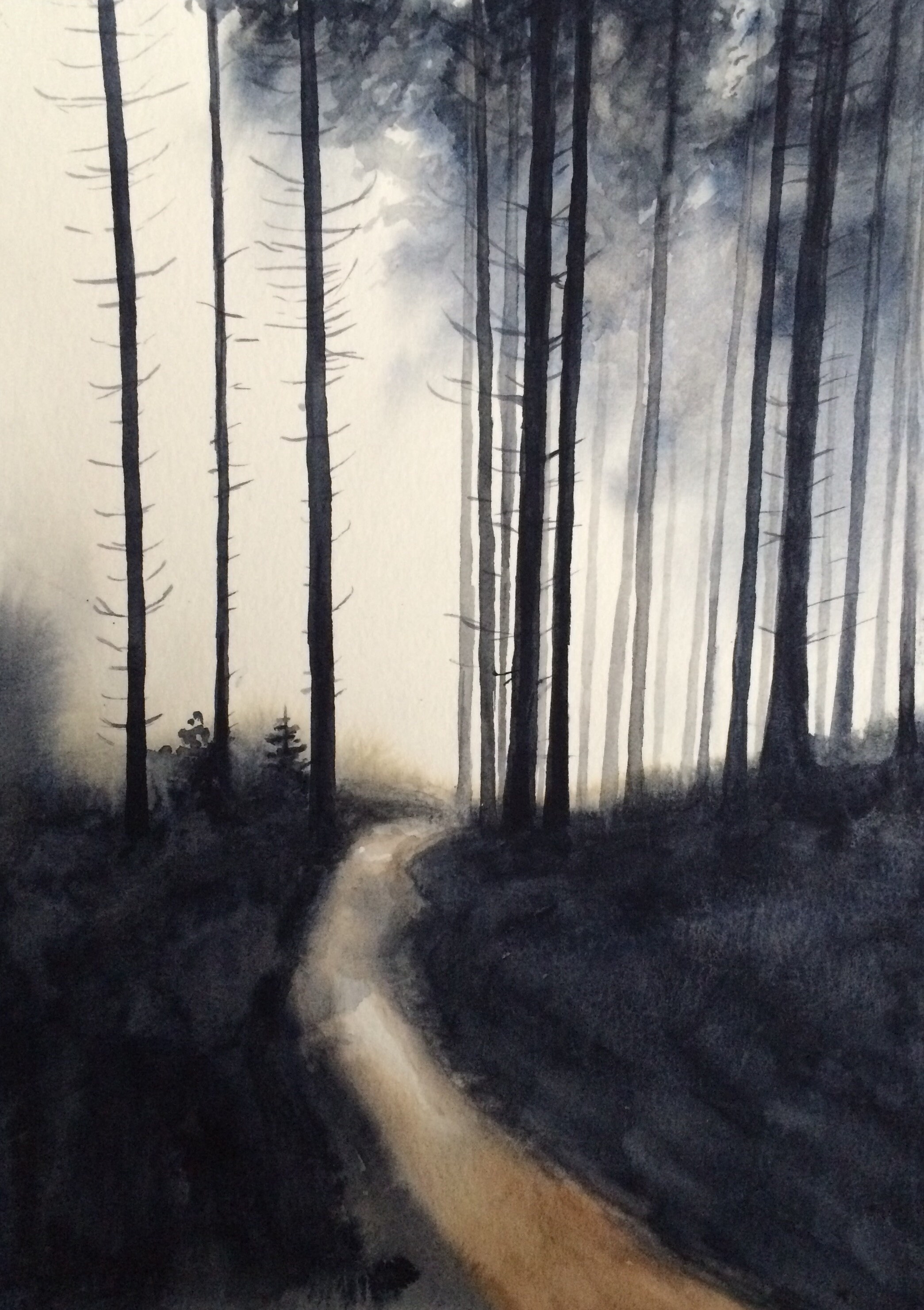 Forest Painting Foggy Forest Forest Watercolor Misty Trees Etsy